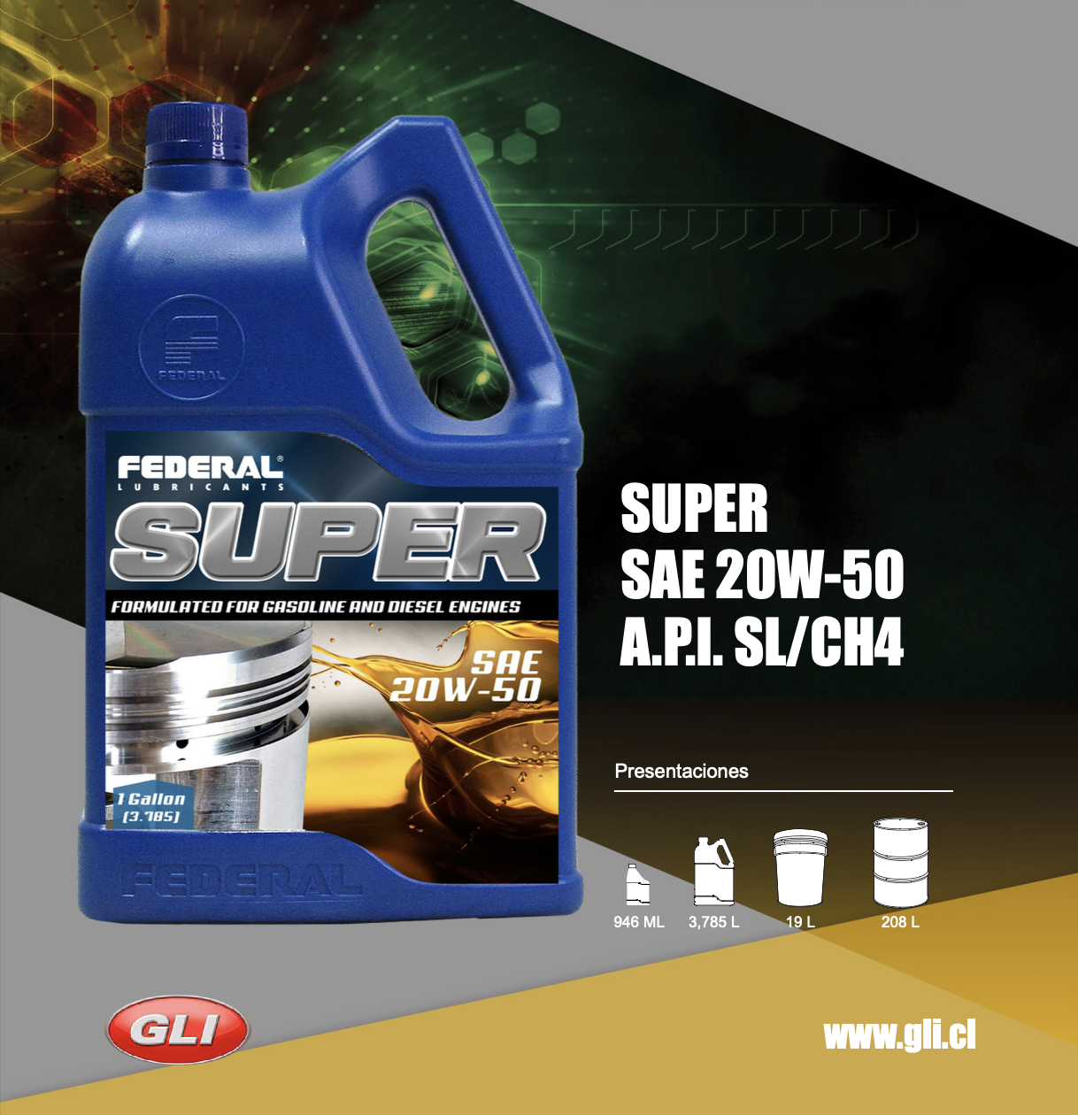 | Envase | 208L, 3,785L, 946ML |